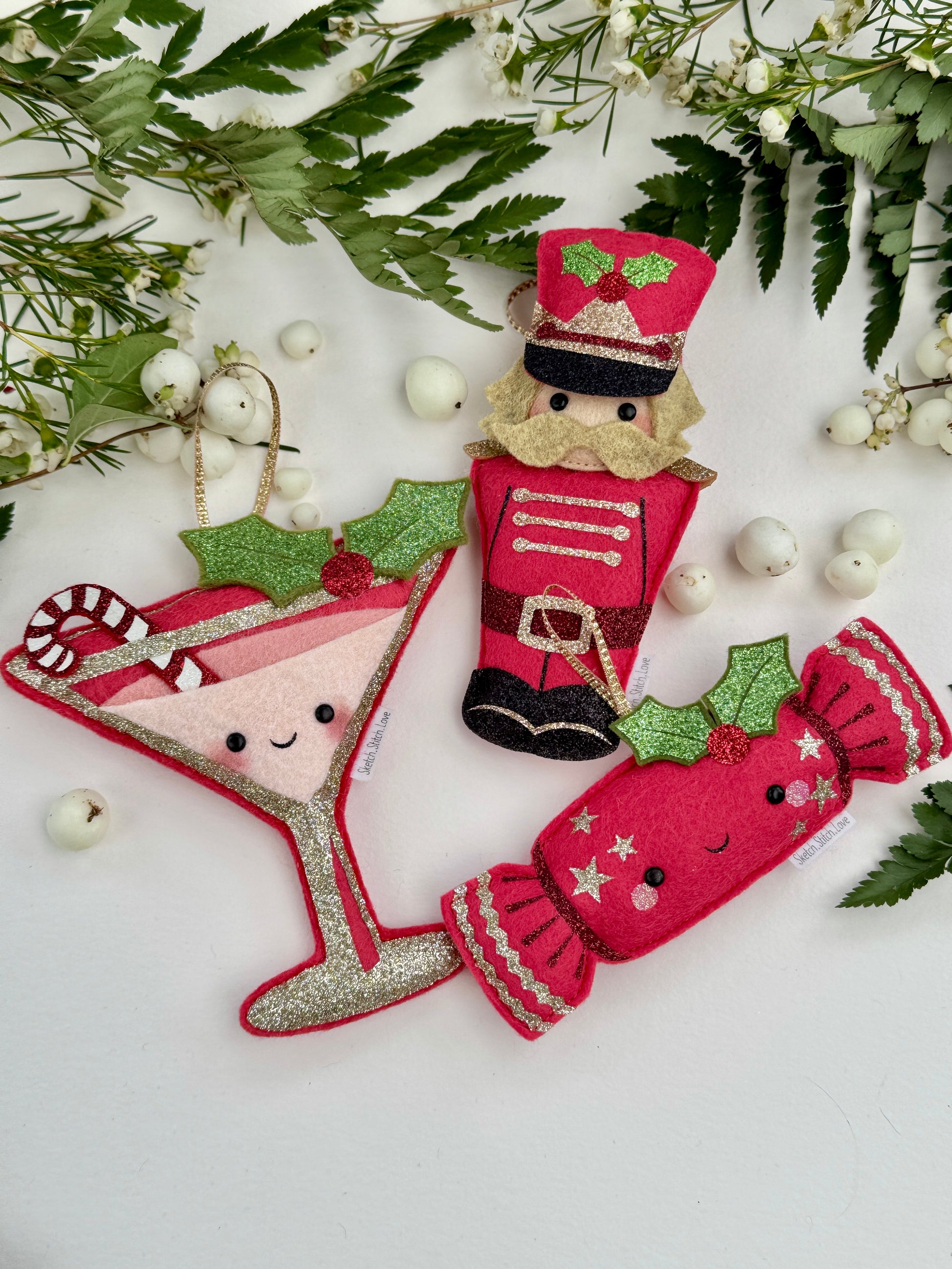 Made from soft, wool blend felt and glitter vinyl, she is oozing with pretty sparkles and a cheeky smile, ready to snazz up your tree!