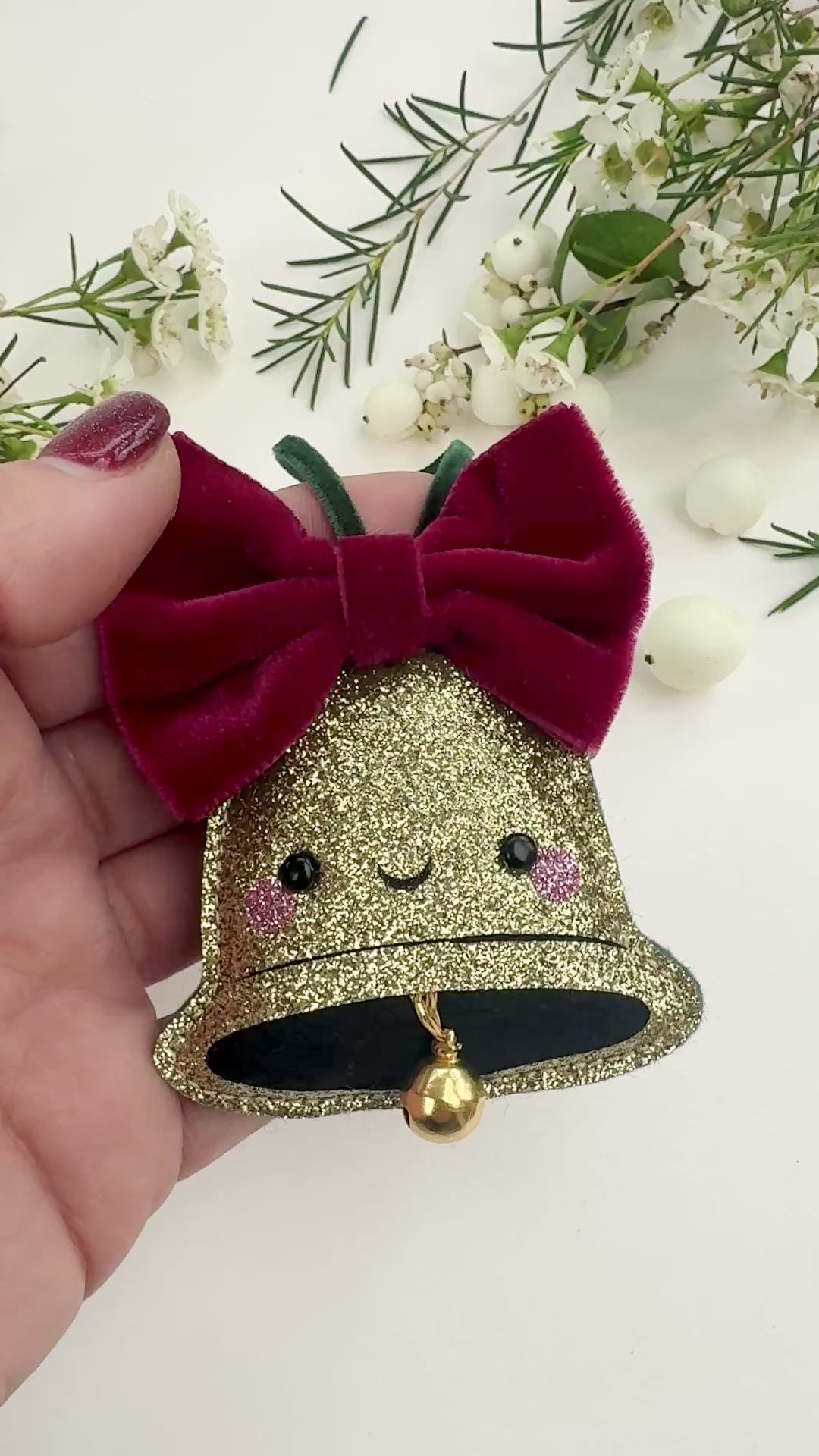 After so many requests from those of you who have seen the bigger bells with Velvet bows in my Harrods collection, I thought I’d do a mini version with a beautiful, burgundy, velvet bow.