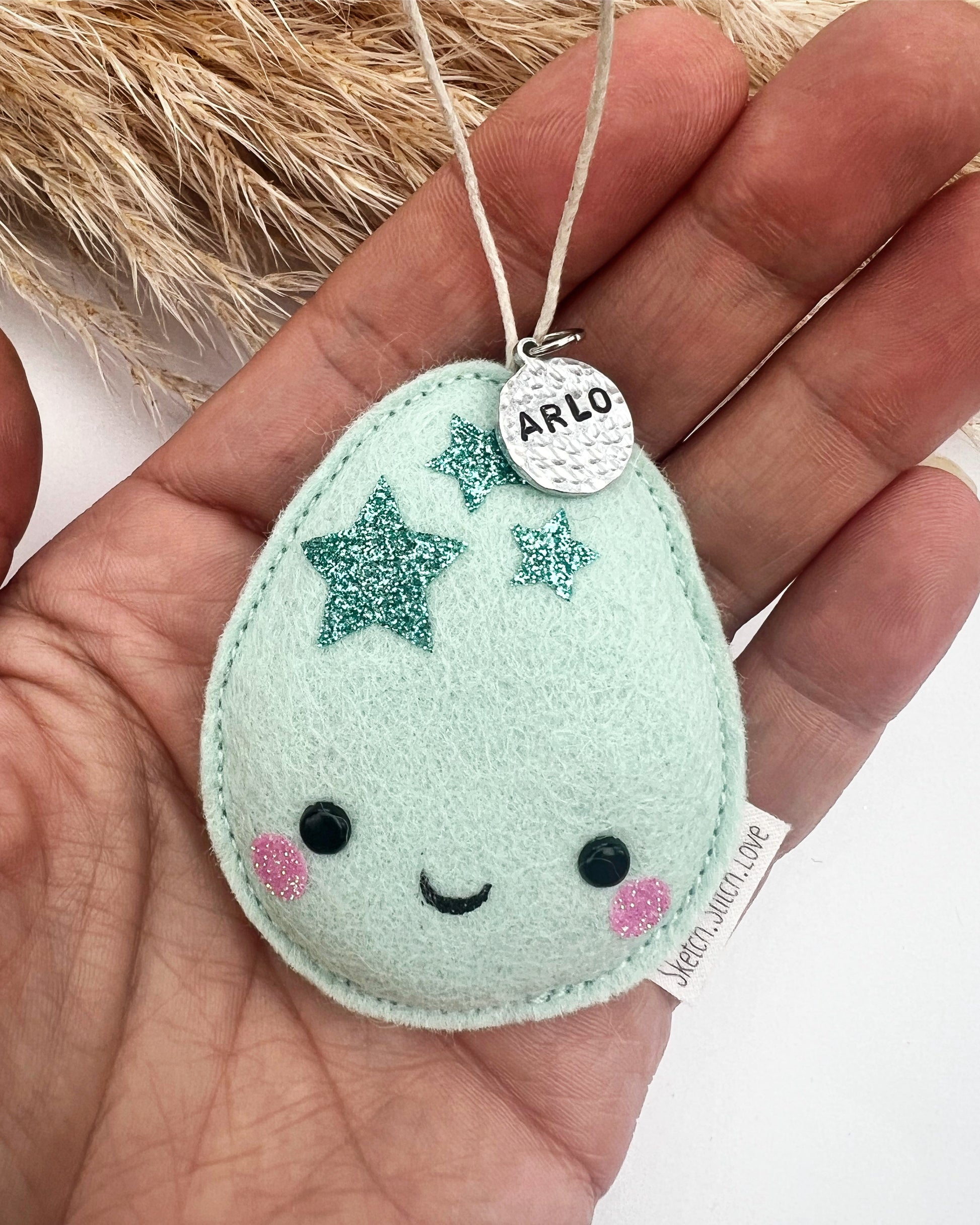 You can add a hand stamped metal name tag for and extra £5 to turn your Mini Egg into a special keepsake or gift.