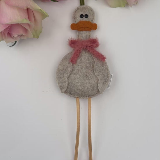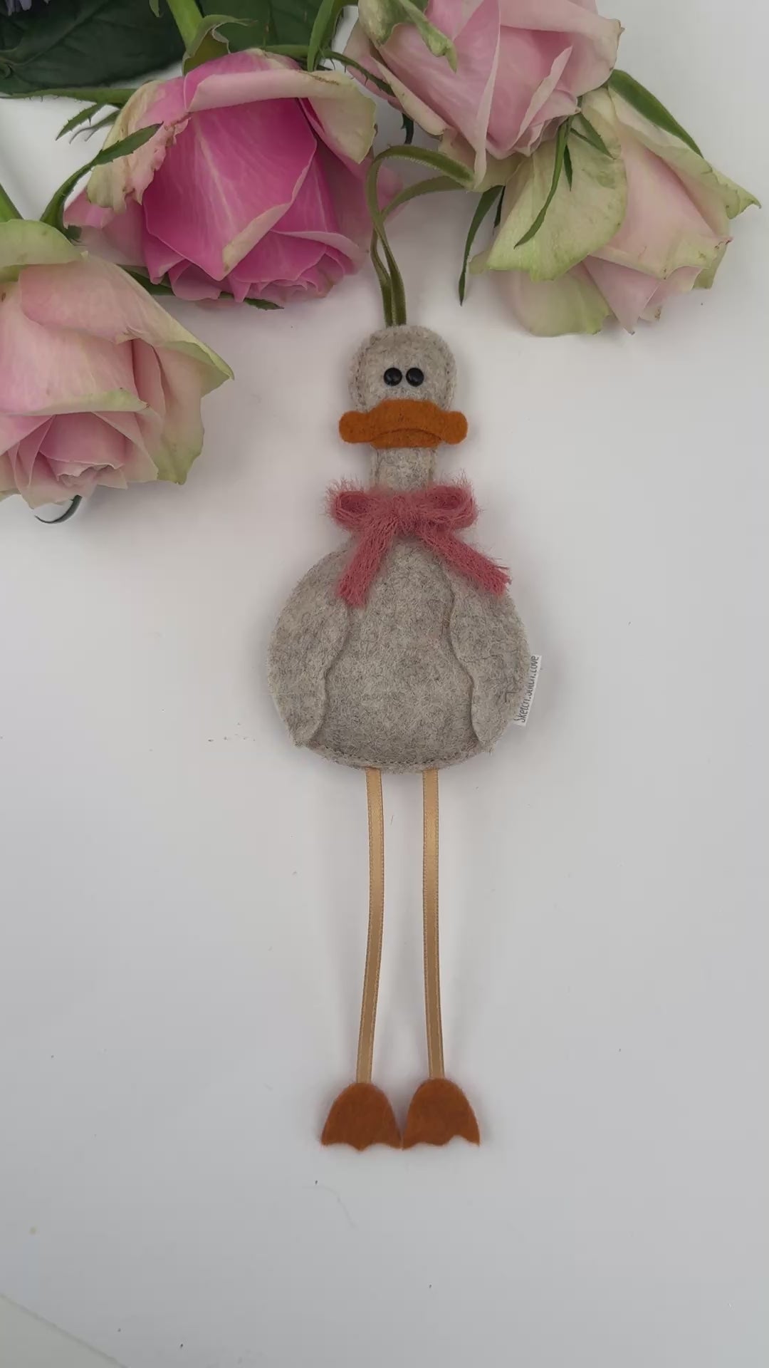 Get ready to fall in love with the latest addition to our Spring Collection - a sweet speckled duck with a flair for fashion. His long legs and chic pink bow are irresistible.